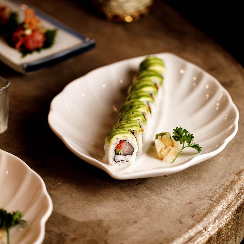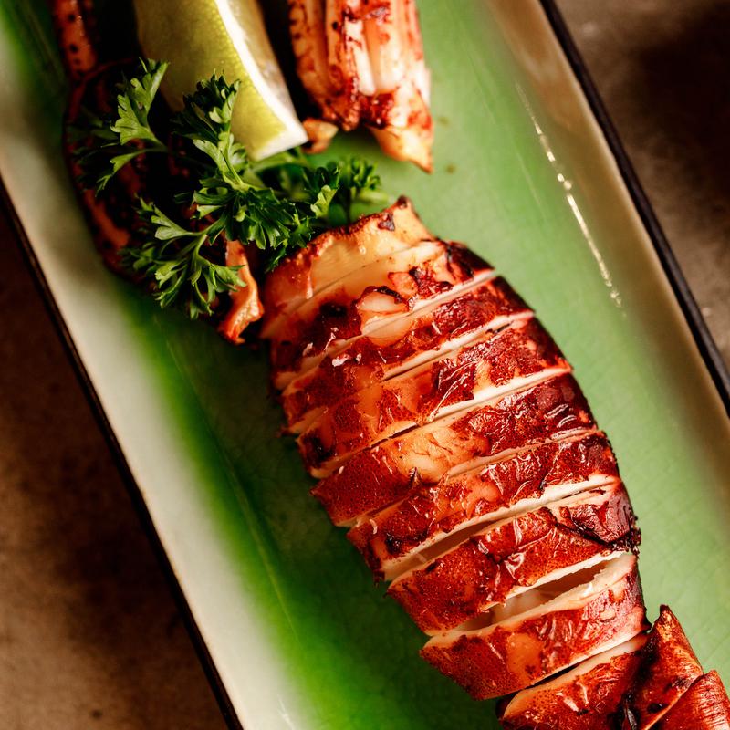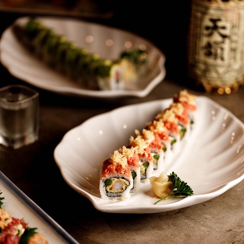 Tempura lobster, avocado, asparagus & spicy mayo rolled with masago