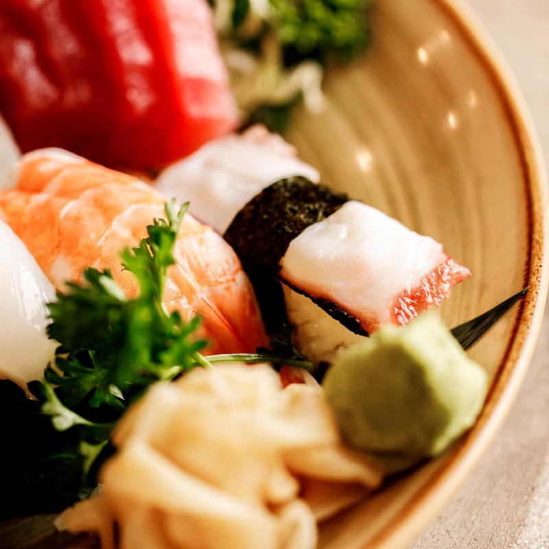 9 pieces of raw fish zanmi -tuna, salmon, and local white fish