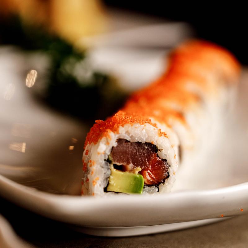 Tuna, avocado, cucumber, scallion & masago topped with eel